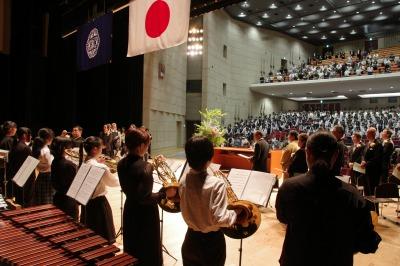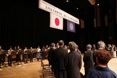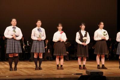 第1部では、理事長・学校長の祝辞につづき、多くのご来賓の方より祝辞を頂戴しました。後半には、昭和40年度卒業生・在校生の言葉、吹奏楽部の生演奏で校歌斉唱とつづきました。