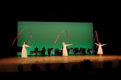 第2部では、「Connect-百年の思いを未来へ―」をテーマにした生徒によるパフォーマンス披露が行われました。演劇部が中心となって劇が進んでいき、劇中の情景や主人公の感情などをダンス部・新体操部・合唱部が表現。クライマックスには、全クラブとTGSAの代表者も出演しました。