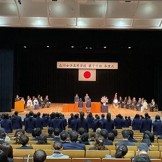 3月3日(月)、たましんRISURUホールで第77回卒業式を行いました。