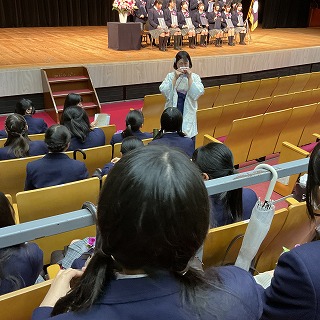 入学した頃は、コロナによる制限が残っていたけれど、2年生からはそれもなくなり修学旅行や体育祭・文化祭など楽しい高校生活を送ることができたこと。でも、進路などで悩むことがあったこと。そんな時に先生方や保護者がいつも味方になって相談に乗ってくれた。だから、後輩のみんなも悩みは一人で抱え込まずに助けを求めましょうというお話が印象的でした。