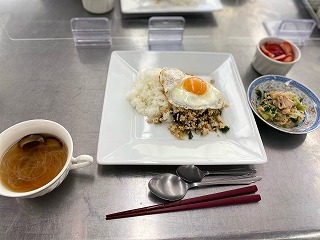 一方、「未来の健康を育む栄養士を目指そう!」の実習では、ガパオライスに挑戦!