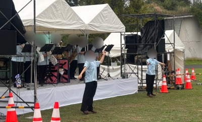 9月には日本管楽合奏コンテストの録音を行い、さらに文化祭でも演奏しました。10月には昭和記念公園で実施された「スポーツフェスタ2025」でも演奏させていただき、雨が降る中、演奏を楽しんでいただきました。