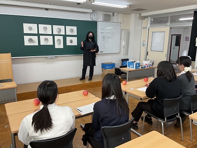 講師の先生からの「りんごが赤くて丸いというイメージを捨ててくださいね」という言葉は、生徒たちにとって特に心に残るアドバイスとなったようです。